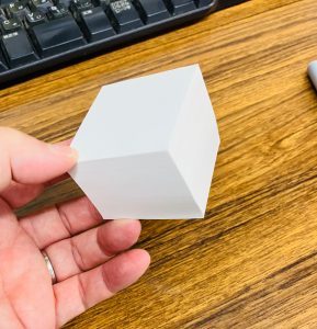 5cm×5cm×5cmのミニブロックメモ帳を作りたいと思い試作品を工場スタッフに作ってもらいました。