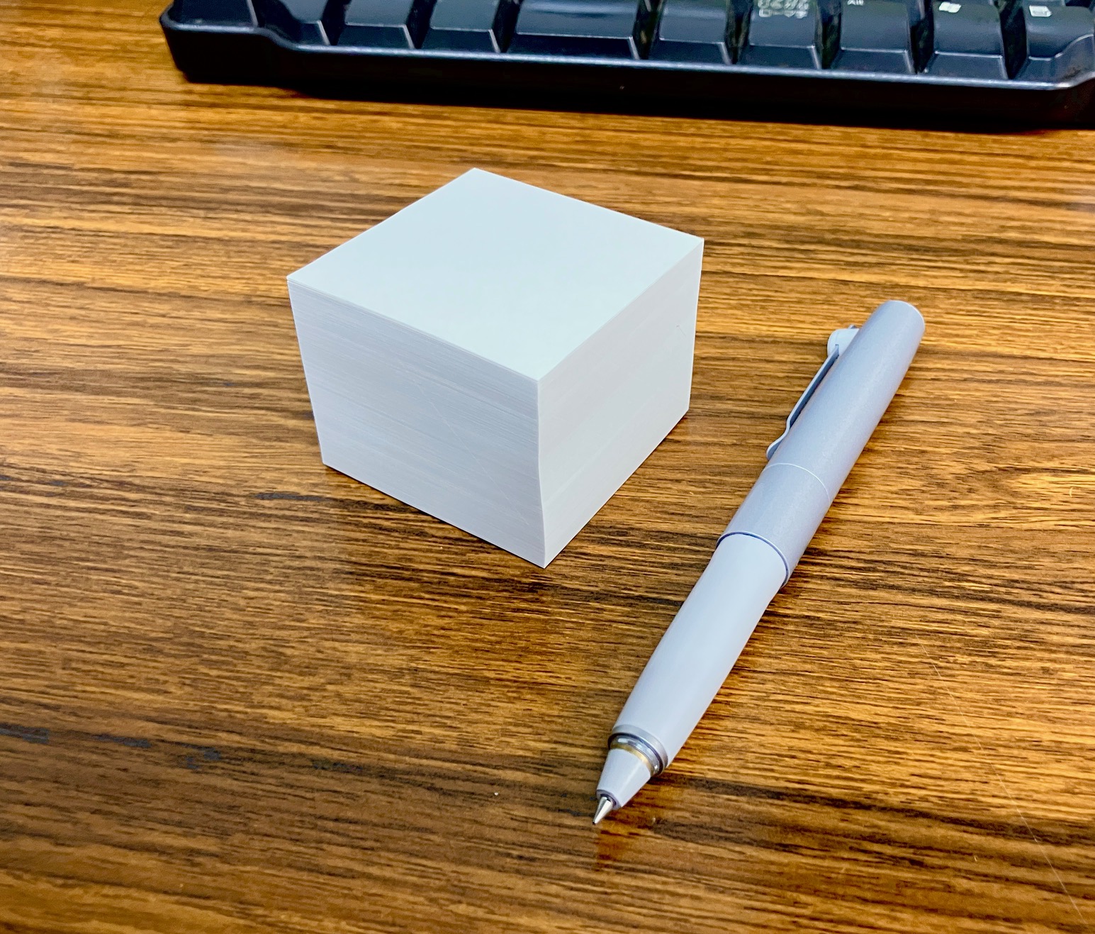 5cm×5cm×5cmのミニブロックメモ帳を作りたいと思い試作品を工場スタッフに作ってもらいました。